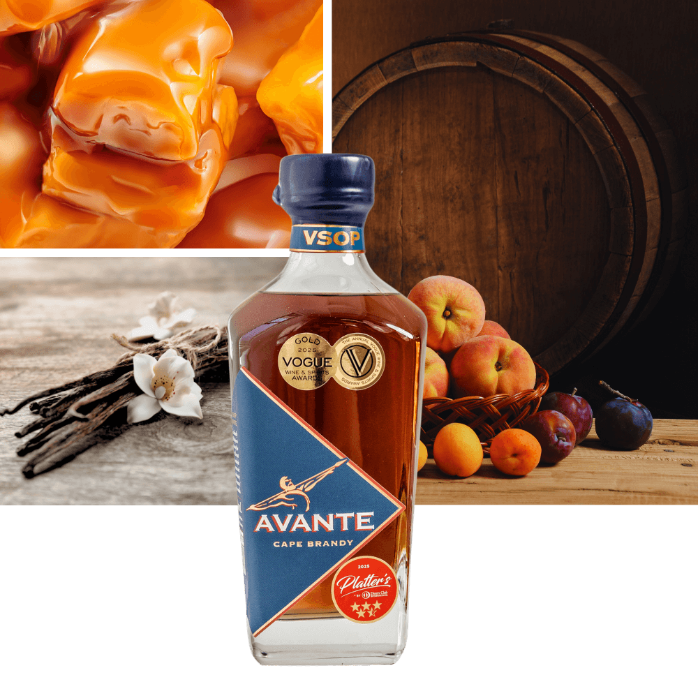 Avante VS Cape Brandy is meticulously crafted from double distilled potstill brandy, 100% barrel aged for at least 3 years. Fruity and smooth with subtle caramel and toffee notes, VS is versatile enough to be enjoyed in a number of ways.